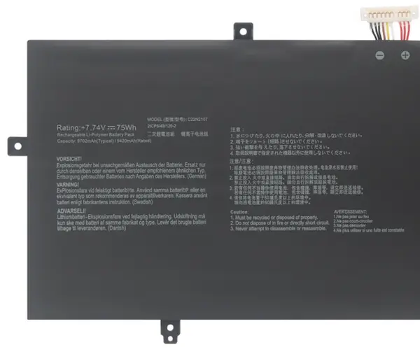 7.74V, 75Wh battery for asus C22N2107. The quality of this for asus C22N2107 battery is certified as well by RoHS and the CE to name a few. Cheap price and high quality!