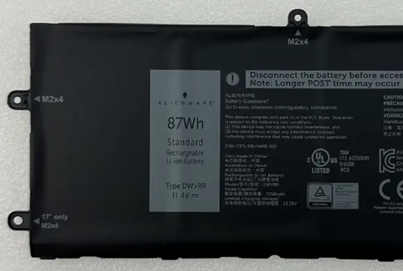 87Wh 11.4V Replacement For Dell DWVRR Battery