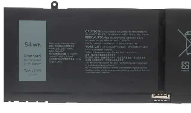 15V, 54Wh Extended Life battery for dell v6w33. The quality of this for dell v6w33 battery is certified as well by RoHS and the CE to name a few. Cheap price and high quality!